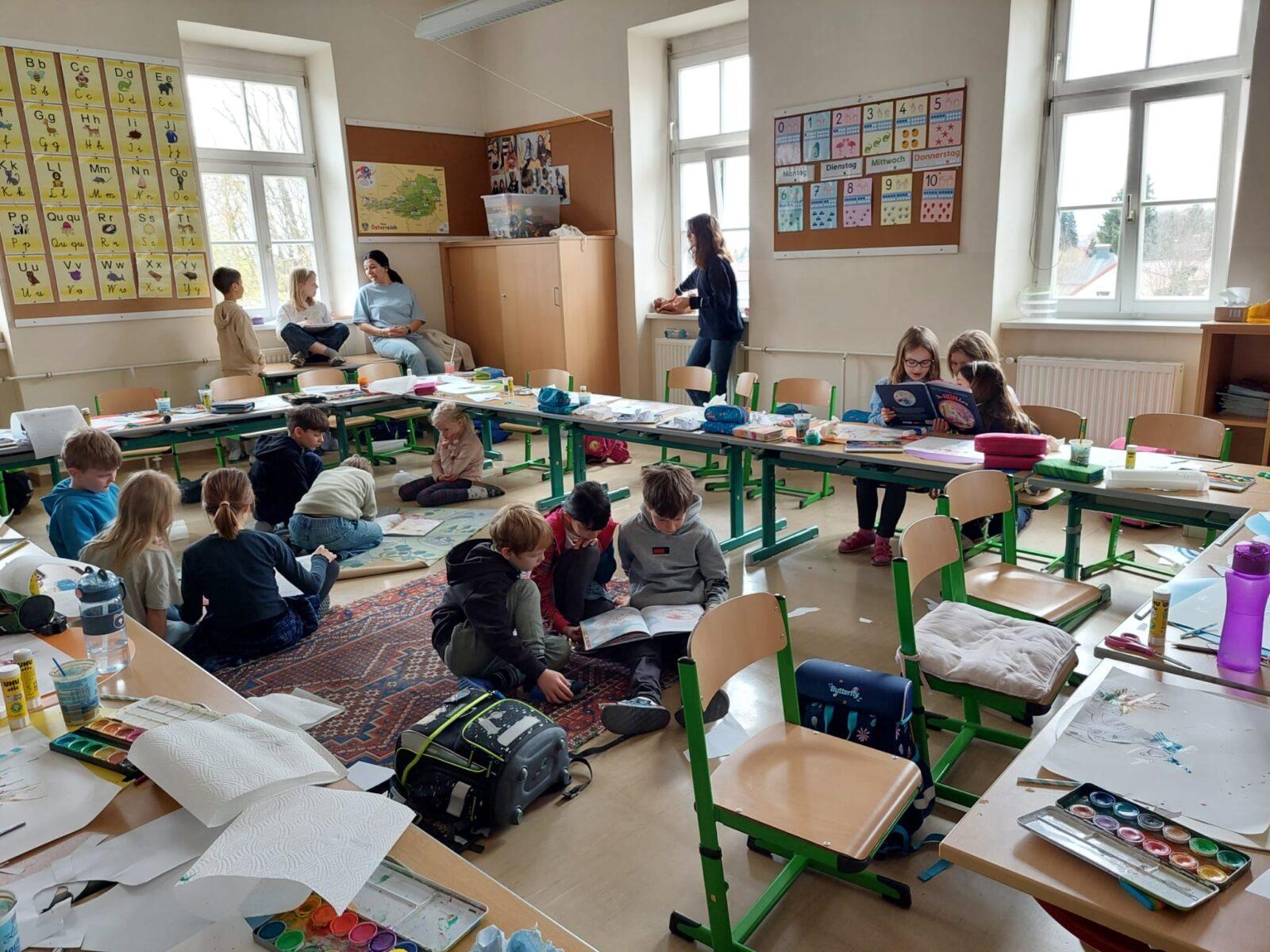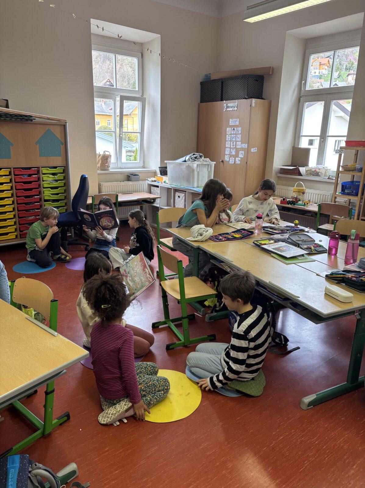 Anlässlich des Vorlesetages haben sich die Klassen 3A und 3B etwas ganz Besonderes einfallen lassen: Sie luden die Kinder der 1A zu einer gemeinsamen Vorlesezeit ein.