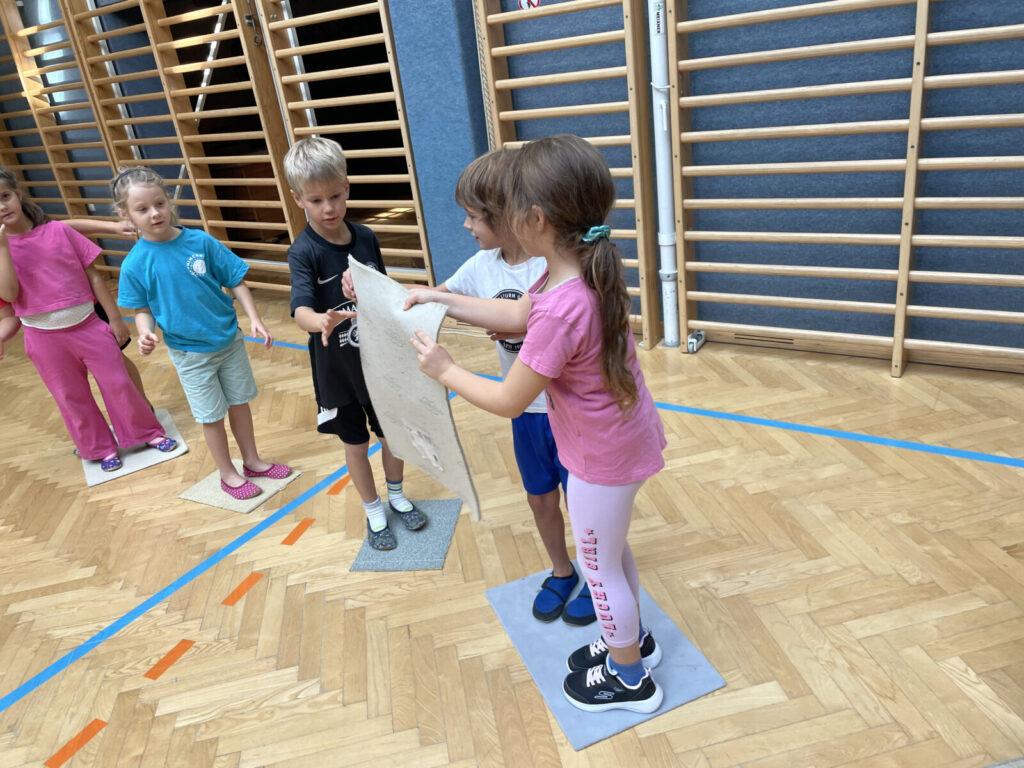 Das Motto der 1B Klasse lautet: Gemeinsam sind wir stark! Aus dieser Motivation heraus nutzten wir die vergangenen Sportstunden für verschiedene kooperative Spiele und gruppenbildende