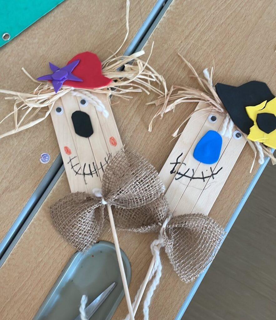 Stolz präsentieren die Kinder der 1A Klasse ihre herbstlichen Vogelscheuchen.