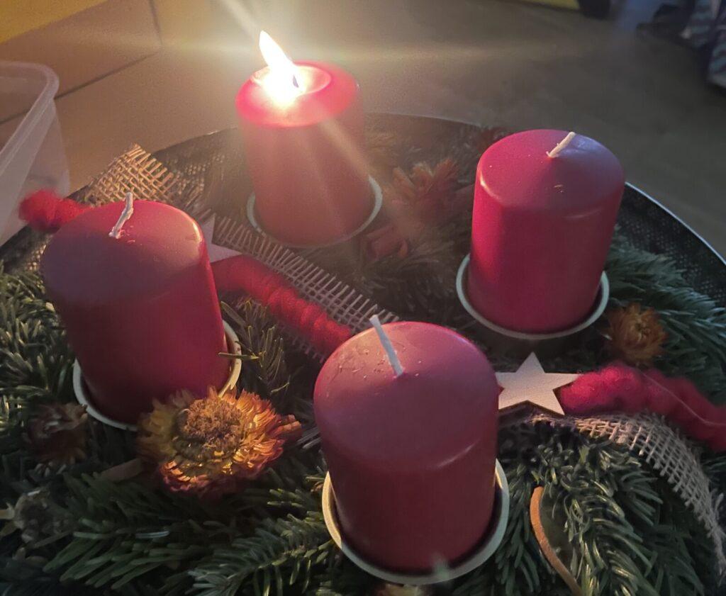 ….. hieß es heute in der Schule! Die gesamte Schulgemeinschaft feierte die Segnung der Adventkränze mit Pfarrer Wolfgang Schwarz. Gemeinsam freuen wir uns auf die