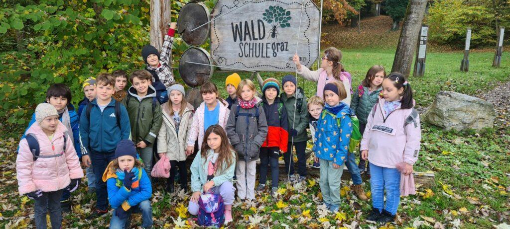 Gemeinsam mit zwei Waldpädagoginnen der Grazer Waldschule durchforsteten die Kinder der 2B Klasse den Leechwald: Wir entdeckten einen riesigen Dachsbau und die Larven der Gallwespe,