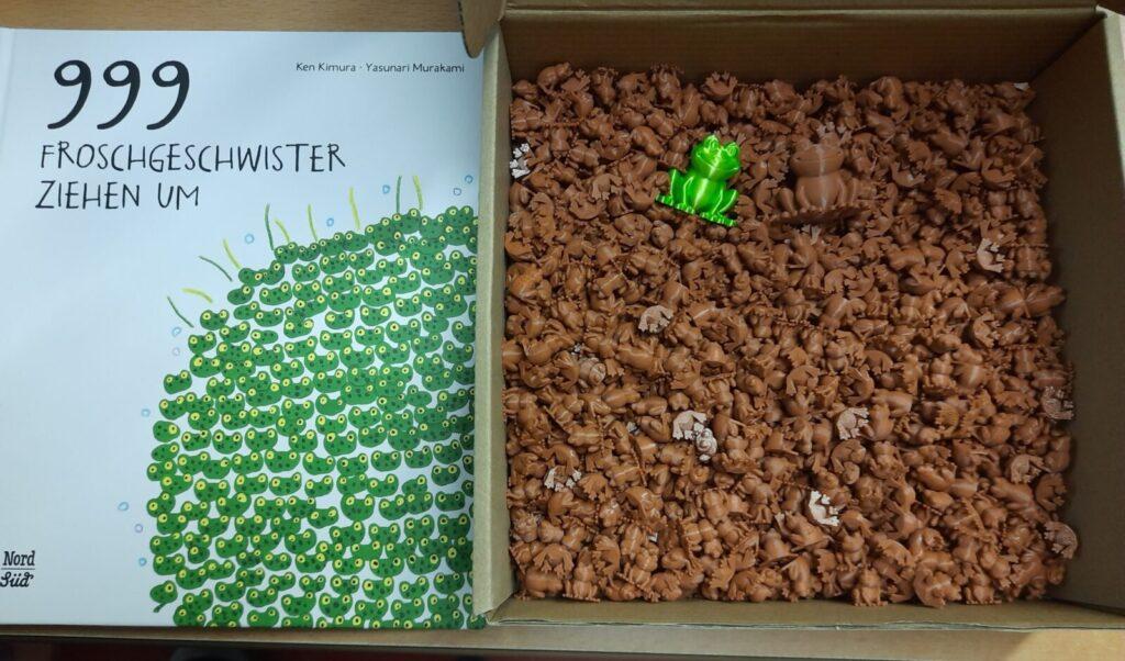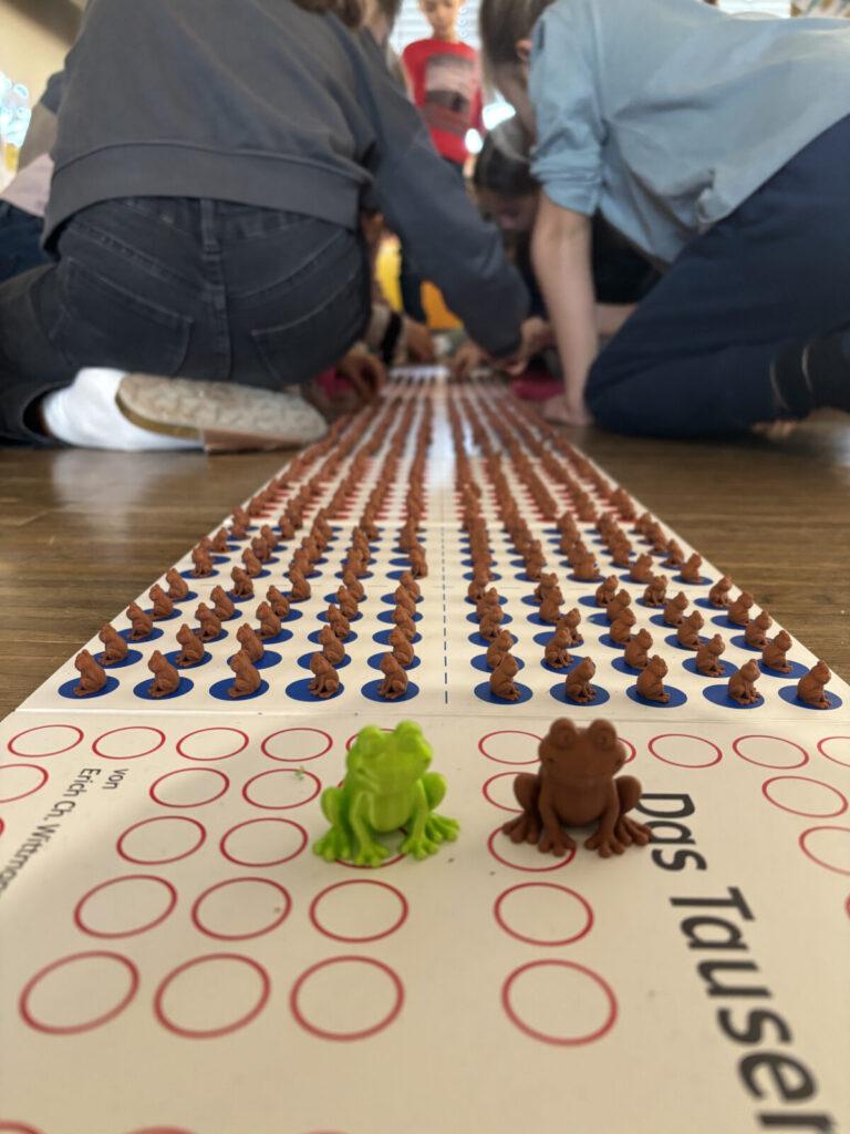 Das Bilderbuch „999 Froschgeschwister ziehen um“ bietet einen lebendigen Einstieg in das Erforschen großer Zahlen. Gemeinsam mit den vielen kleinen Fröschen begaben sich die Kinder