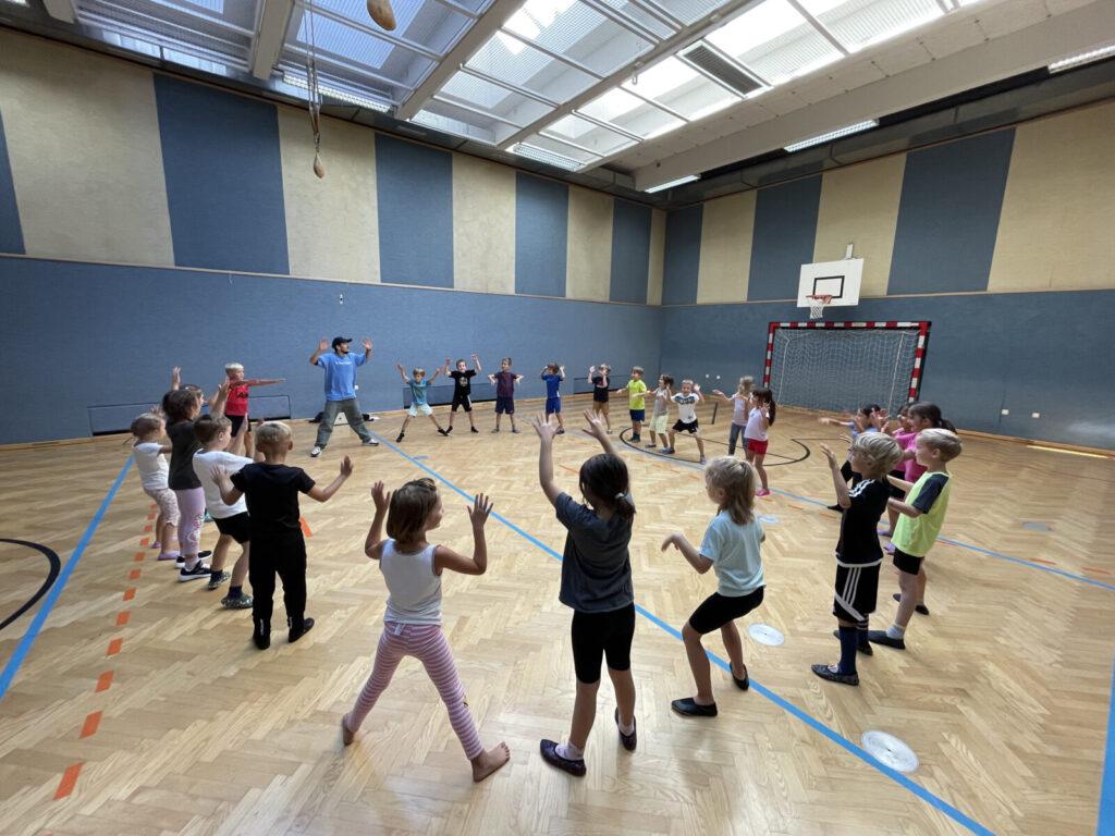 Im Rahmen des Sportunterrichts lernen die Kinder nicht nur Grundformen der Bewegung, sondern auch bessere Körperwahrnehmung. Durch diverse Übungen alleine und im Team konnten die