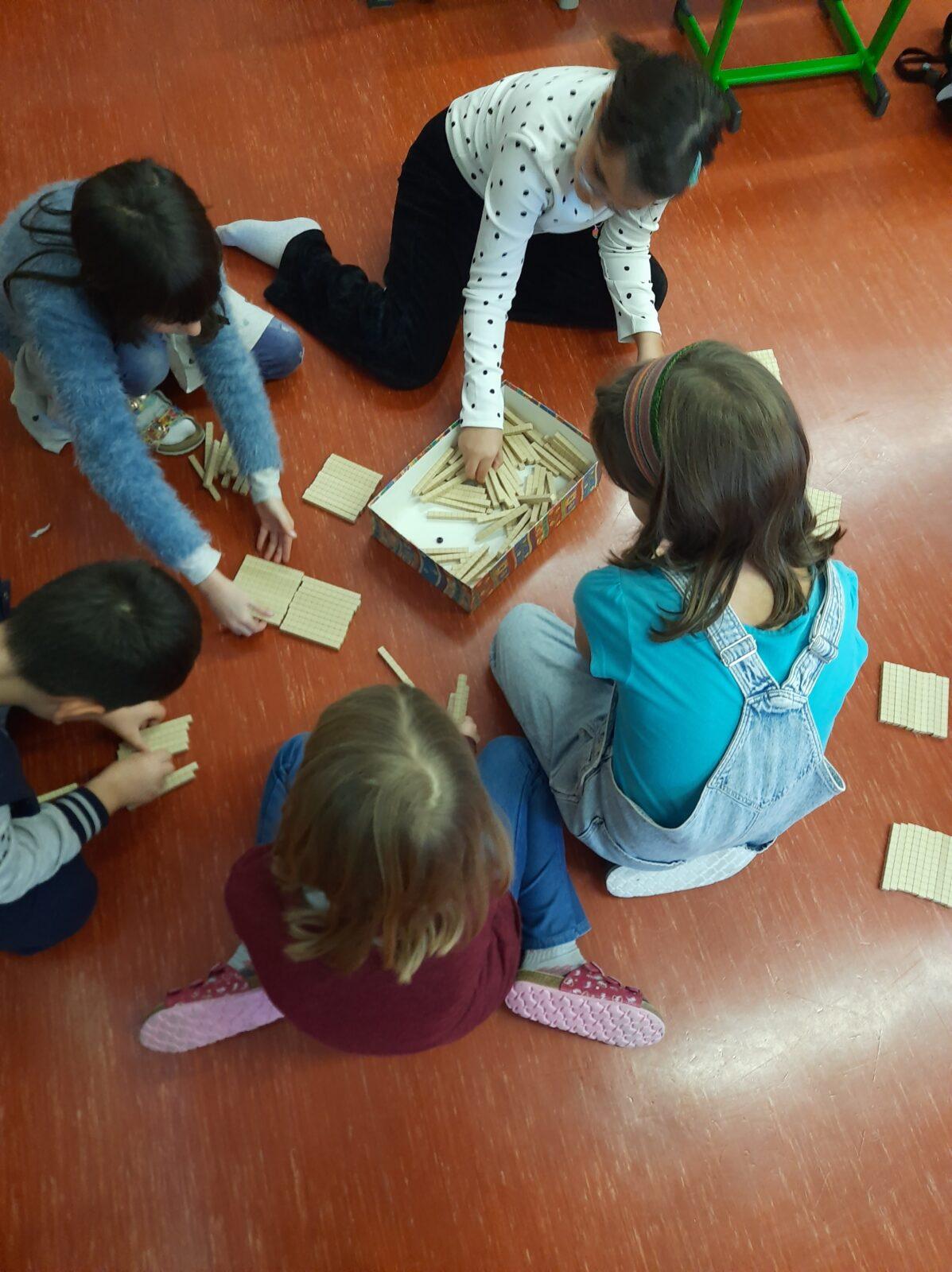 Durch das handelnde Arbeiten wurde das Dezimalsystem greifbar und verständlich. Die Kinder wiederholten, wie Zahlen aufgebaut sind – mit Einer-, Zehner- und Hunderterstellen.